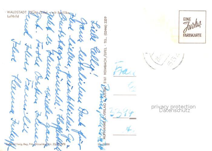 73608760 alte Postkarte Pruem Eifel Fliegeraufnahme mit Basilika postalisch gelaufen Erhaltung siehe scans [WerneD78] KatCode: 11110007232108