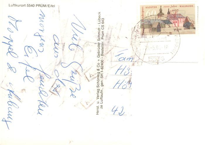 73882540 alte Postkarte Pruem Eifel Fliegeraufnahme mit Kloster Kirche postalisch gelaufen Erhaltung siehe scans [FriedD77] KatCode: 11110007232108