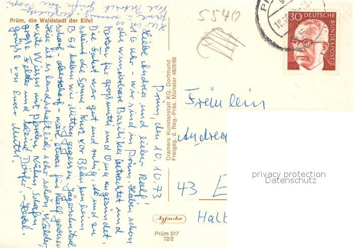 73712021 alte Postkarte Pruem Eifel Fliegeraufnahme postalisch gelaufen Erhaltung siehe scans [WerneD78] KatCode: 11110007232108