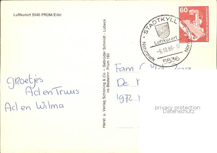 72333924 alte Postkarte Pruem Eifel Fuerstabtei postalisch gelaufen Erhaltung siehe scans KatCode: 11110007232108