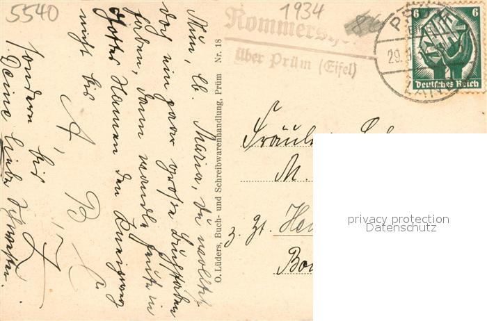73695019 alte Postkarte Pruem Eifel Gesamtansicht postalisch gelaufen Erhaltung siehe scans [LiesaD40] KatCode: 11110007232108