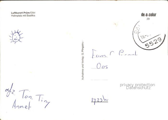 72394562 alte Postkarte Pruem Eifel Hahnplatz mit Basilika Luftkurort postalisch gelaufen Erhaltung siehe scans KatCode: 11110007232108