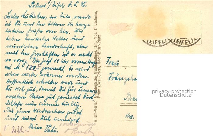 73559651 alte Postkarte Pruem Eifel Panorama postalisch gelaufen Erhaltung siehe scans [FriedD77] KatCode: 11110007232108
