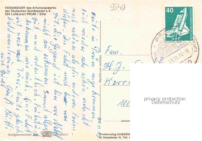 74055007 alte Postkarte Pruem Eifel Rheinland-Pfalz Feriendorf des Erholungswerks der Deutschen Bundespost Gastraum Panorama postalisch gelaufen Erhaltung siehe scans [WerneD78] KatCode: 11110007232108