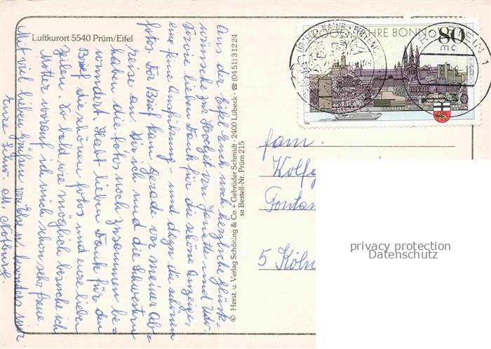 74153786 alte Postkarte Pruem Eifel Rheinland-Pfalz Teilansichten Zentrum Park postalisch gelaufen Erhaltung siehe scans [FriedD77] KatCode: 11110007232108