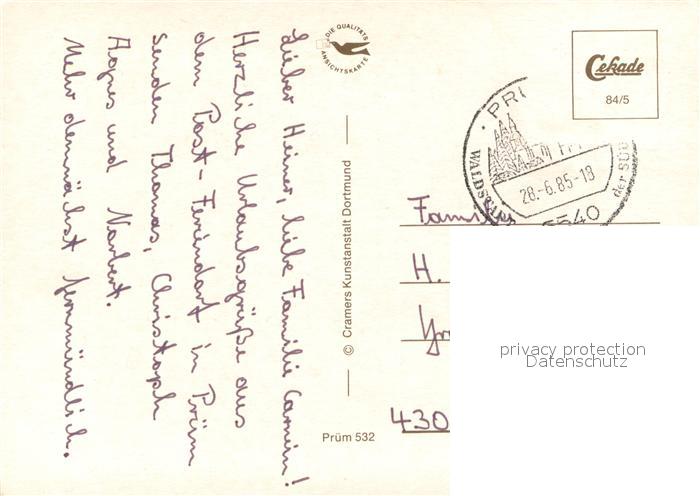 73720929 alte Postkarte Pruem Eifel St Salvator Basilika Alter Markt Kurcenter Schwanenteich Basilika postalisch gelaufen Erhaltung siehe scans [WerneD78] KatCode: 11110007232108