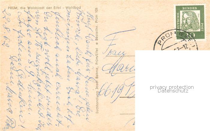 73830069 alte Postkarte Pruem Eifel Waldbad Freibad postalisch gelaufen Erhaltung siehe scans [FriedD77] KatCode: 11110007232108