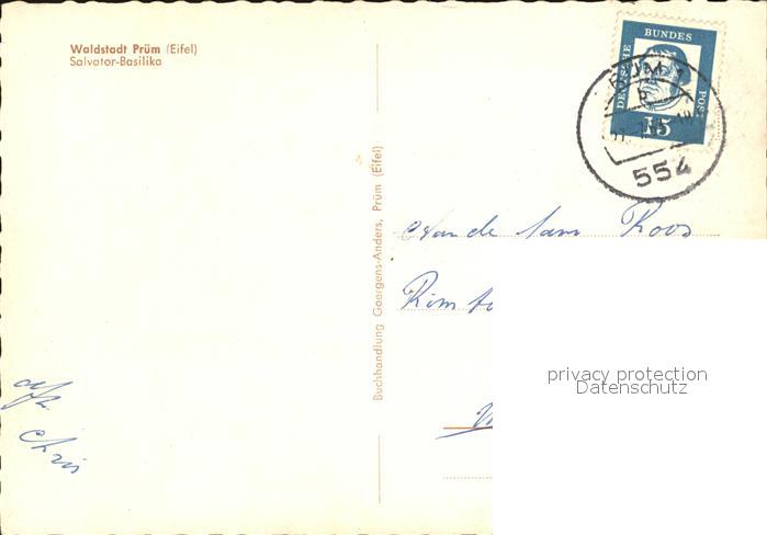 72426290 alte Postkarte Pruem Eifel Waldstadt Salvator Basilika postalisch gelaufen Erhaltung siehe scans KatCode: 11110007232108