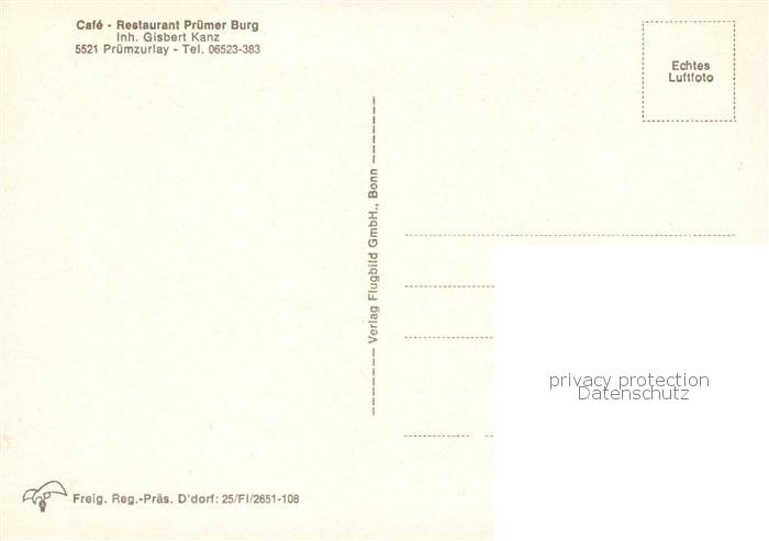 73812783 Pruemzurlay Cafe Restaurant Pruemer Burg postalisch nicht gelaufen Fliegeraufnahme Erhaltung siehe scans [WerneD78] KatCode: 11110007232108