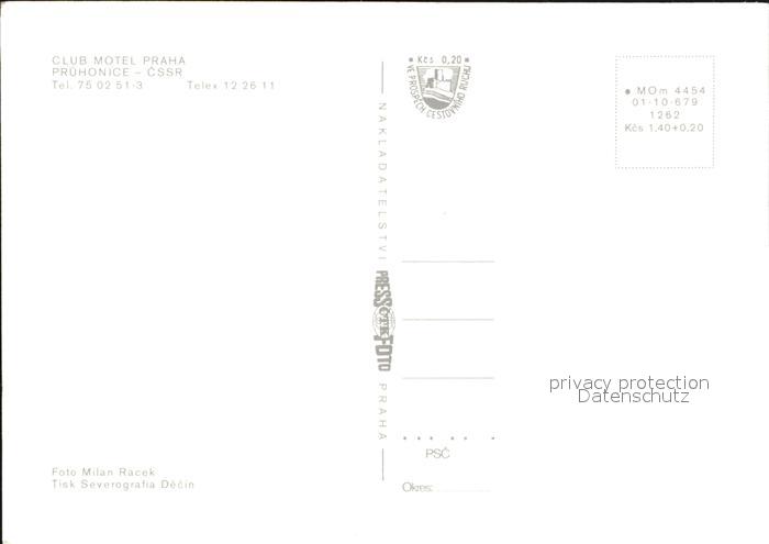 Pruhonice Club Motel Praha postalisch nicht gelaufen Erhaltung siehe scans