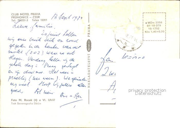 old postcard Pruhonice Club Motel Praha postalisch gelaufen Erhaltung siehe scans