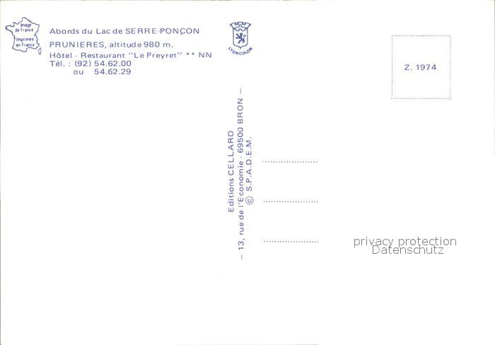 12493983 Prunieres Hautes-Alpes Lac de Serre Poncon Hotel Le Preyret postalisch nicht gelaufen Erhaltung siehe scans KatCode: 11170005205106