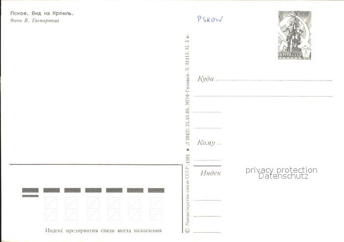 Pskov Kremlin postalisch nicht gelaufen Ganzsache (eingedruckte Briefmarke) Erhaltung siehe scans [NatalD47]