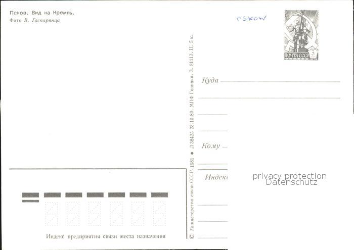 Pskov Kremlin postalisch nicht gelaufen Ganzsache (eingedruckte Briefmarke) Erhaltung siehe scans [NatalD47]