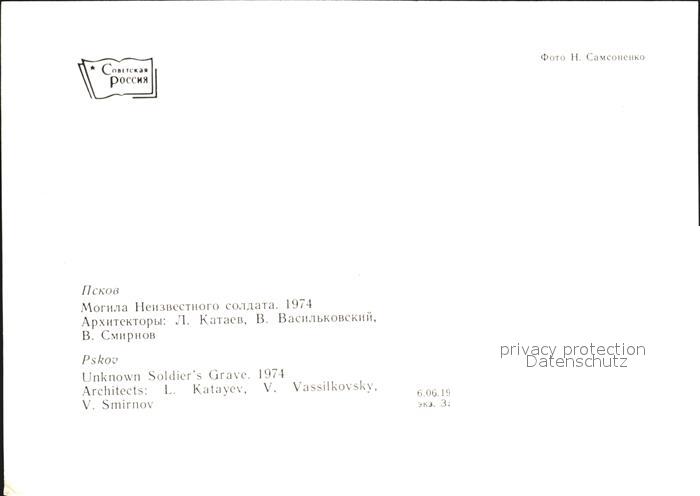 Pskov Unknown Soldiers Grave postalisch nicht gelaufen Keine Postkarte (siehe scan) Erhaltung siehe scans [NatalD47]