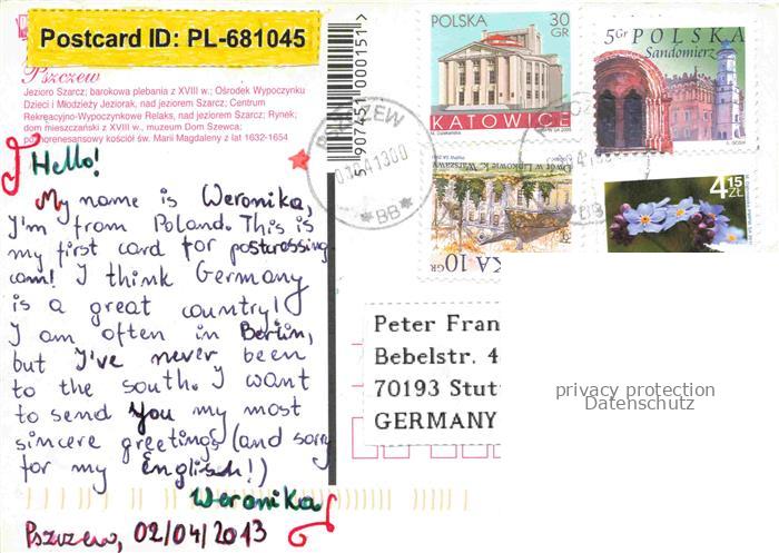 74005617 old postcard Pszczew Miedzyrzecz PL Panorama Teilansichten Strand Bungalows Kirche Skulptur postalisch gelaufen Erhaltung siehe scans [WerneD78] KatCode: 11410