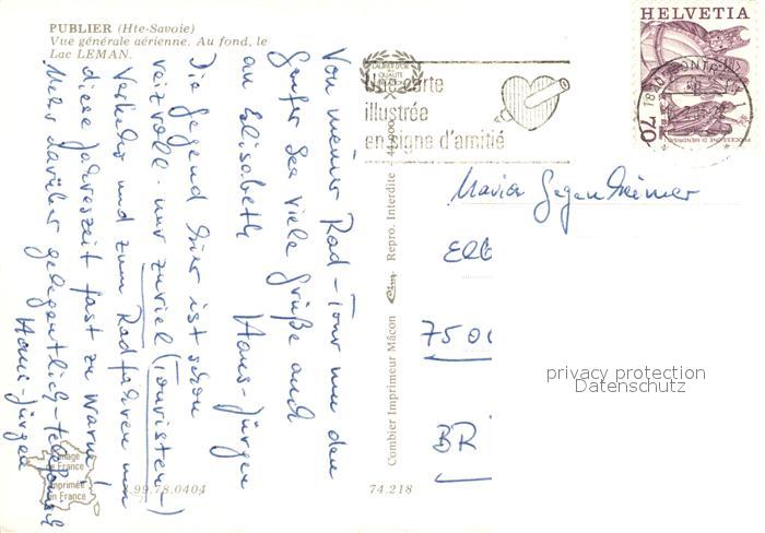 13235813 carte postale Publier Lac Leman Genfersee Fliegeraufnahme postalisch gelaufen Erhaltung siehe scans [FriedD77] KatCode: 11170074474218