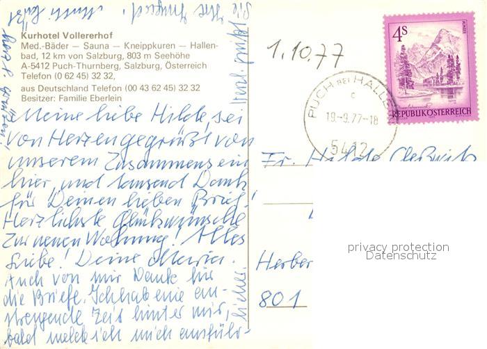 73167064 alte Postkarte Puch Thurnberg Kurhotel Vollererhof postalisch gelaufen Erhaltung siehe scans [WerneD78] KatCode: 11390323050209