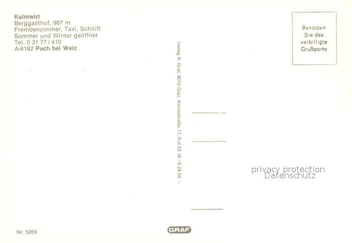 73070848 Puch Weiz Kulmwirt Berggasthof Denkmal Statue Gipfelkreuz postalisch nicht gelaufen Erhaltung siehe scans [FriedD77] KatCode: 11390224061740