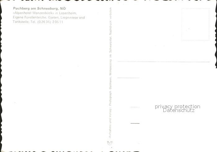 72126008 Puchberg Schneeberg Alpenhotel Wanzenbrock in Losenheim postalisch nicht gelaufen Erhaltung siehe scans KatCode: 11390122031826