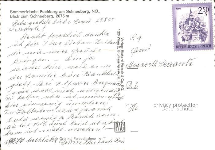 72457486 alte Postkarte Puchberg Schneeberg Blick zum Schneeberg postalisch gelaufen Erhaltung siehe scans KatCode: 11390122031826