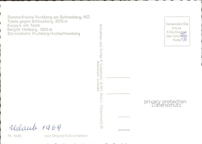 72016897 Puchberg Schneeberg mit Schneeberg Kurpark Zahnradbahn Hochschneeberg postalisch nicht gelaufen Erhaltung siehe scans KatCode: 11390122031826