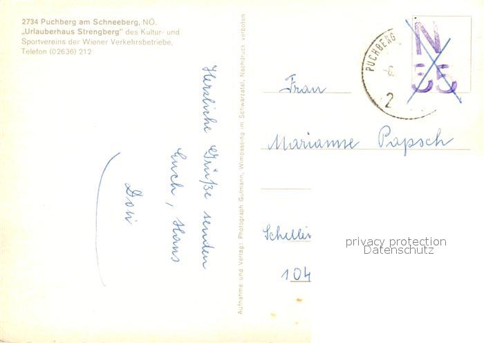 73291226 alte Postkarte Puchberg Schneeberg uerlauberhaus Strengberg postalisch gelaufen Erhaltung siehe scans [LiesaD40] KatCode: 11390122031826