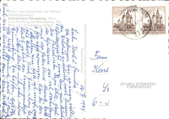 72296914 alte Postkarte Puchberg Schneeberg Urlauberhaus Strengberg postalisch gelaufen Erhaltung siehe scans KatCode: 11390122031826
