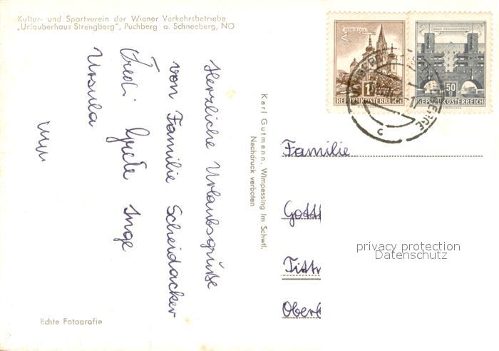 73650198 alte Postkarte Puchberg Schneeberg Urlauberhaus Strengberg Gebirgspanorama postalisch gelaufen Erhaltung siehe scans [FriedD77] KatCode: 11390122031826