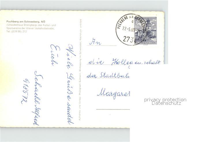 72431819 alte Postkarte Puchberg Schneeberg Urlaubshaus Strengberg postalisch gelaufen Erhaltung siehe scans KatCode: 11390122031826