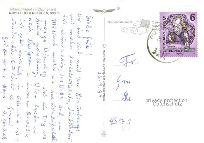 74155910 alte Postkarte Puchenstuben Niederoesterreich AT Fliegeraufnahme postalisch gelaufen Erhaltung siehe scans [WerneD78] KatCode: 11390121032007