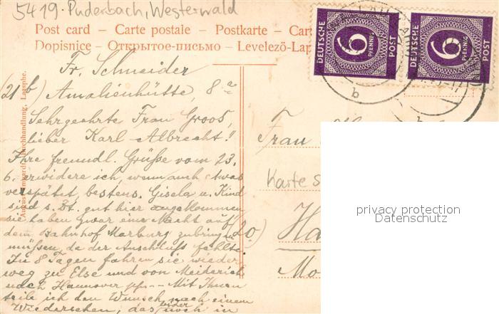 73749263 alte Postkarte Puderbach Panorama postalisch gelaufen Erhaltung siehe scans [WerneD78] KatCode: 11110007138057