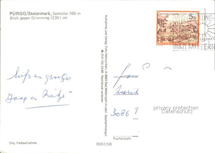 72094866 alte Postkarte Puergg-Trautenfels mit Grimming postalisch gelaufen Erhaltung siehe scans KatCode: 11390222061235