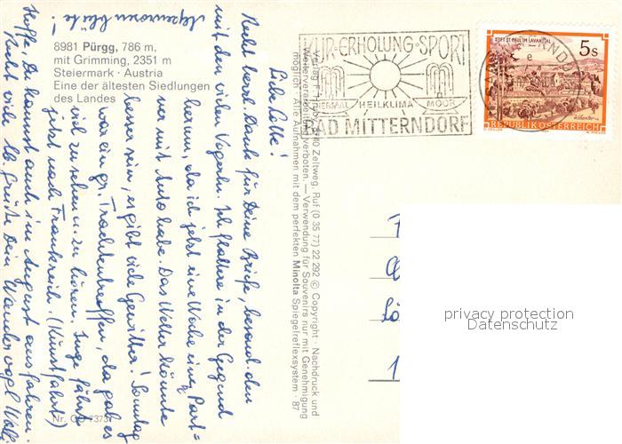 73304454 alte Postkarte Puergg-Trautenfels Ortsmotiv mit Kirche Grimming Kirche Innenansicht Blauer Enzian Alpenflora postalisch gelaufen Erhaltung siehe scans [FriedD77] KatCode: 11390222061235