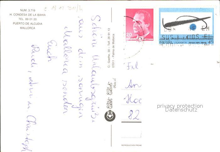 old postcard Puerto d Alcudia Hotel Condesa de la Bahia postalisch gelaufen Erhaltung siehe scans