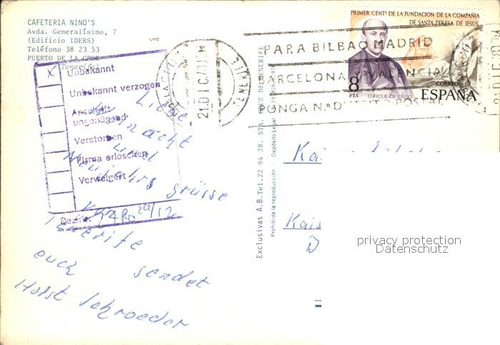 old postcard Puerto de la Cruz Cafeteria Ninos postalisch gelaufen Erhaltung siehe scans