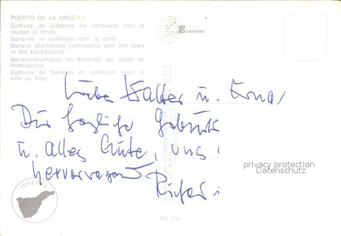 Puerto de la Cruz Fliegeraufnahme Bananenplantagen postalisch nicht gelaufen Erhaltung siehe scans