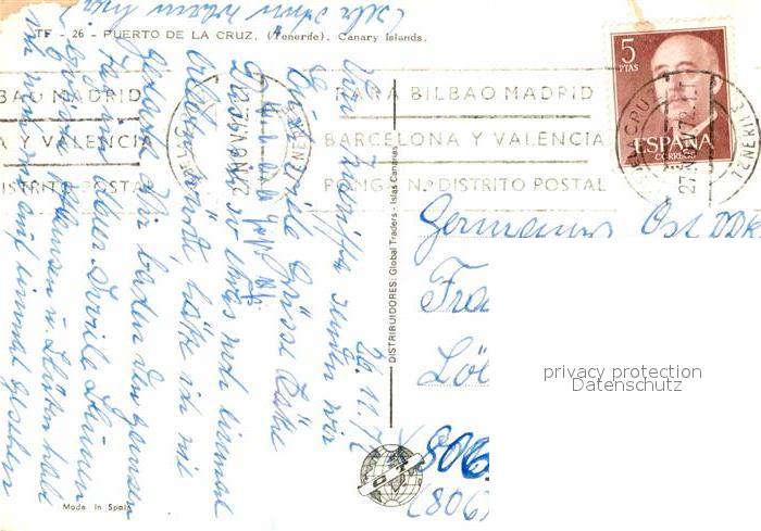 old postcard Puerto de la Cruz Fliegeraufnahme Kirche postalisch gelaufen Erhaltung siehe scans [LiesaD40]
