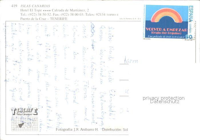 old postcard Puerto de la Cruz Gran Hotel El Tope postalisch gelaufen Erhaltung siehe scans