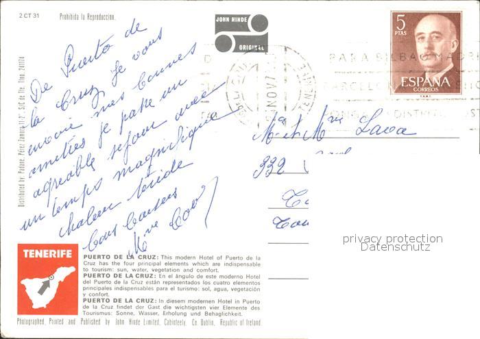 old postcard Puerto de la Cruz Hotel postalisch gelaufen Erhaltung siehe scans
