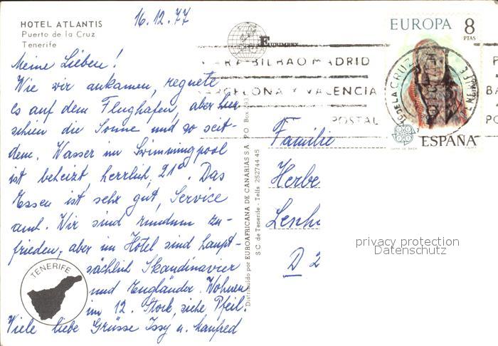 old postcard Puerto de la Cruz Hotel Atlantis postalisch gelaufen Erhaltung siehe scans