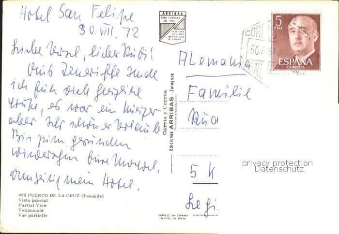 old postcard Puerto de la Cruz Hotel Fliegeraufnahme postalisch gelaufen Erhaltung siehe scans