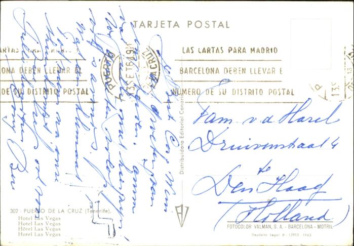 old postcard Puerto de la Cruz Hotel Las Vegas postalisch gelaufen