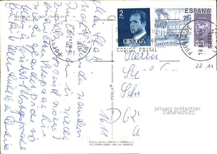 old postcard Puerto de la Cruz Hotel Maritim postalisch gelaufen Erhaltung siehe scans [FriedD77 kt118box]