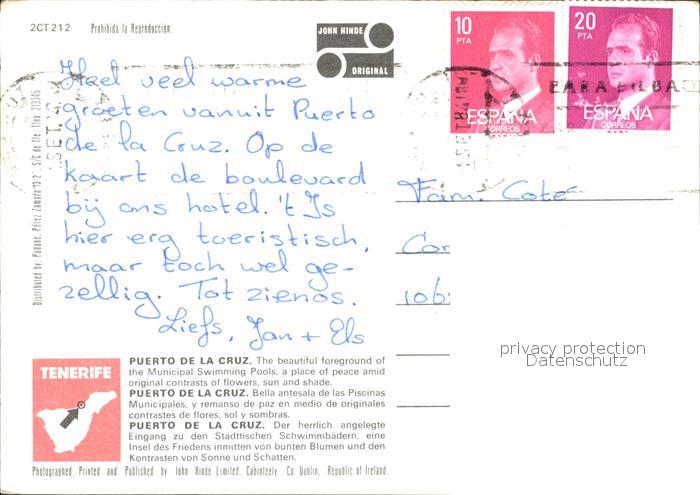 old postcard Puerto de la Cruz Hotenanlage postalisch gelaufen Erhaltung siehe scans