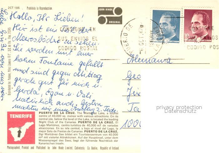 old postcard Puerto de la Cruz Lago Martiánez centro turistico Sala de Fiestas postalisch gelaufen Fliegeraufnahme Erhaltung siehe scans [FriedD77]