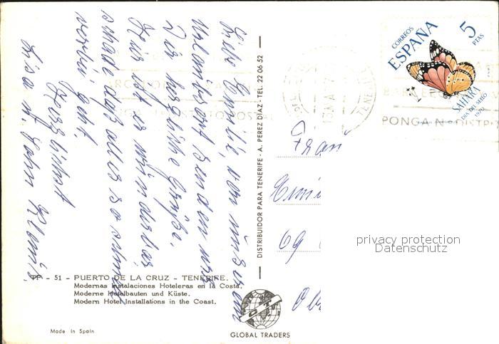 old postcard Puerto de la Cruz Modern Hotel postalisch gelaufen Erhaltung siehe scans