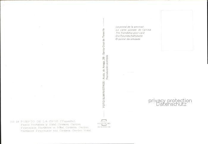 Puerto de la Cruz Paseo Martianez y Hotel Orotava Garden Palmas postalisch nicht gelaufen Erhaltung siehe scans
