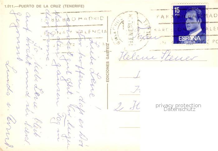 old postcard Puerto-de-la-Cruz Tenerife ES Fliegeraufnahme Hotelterrasse postalisch gelaufen Erhaltung siehe scans [WerneD78]