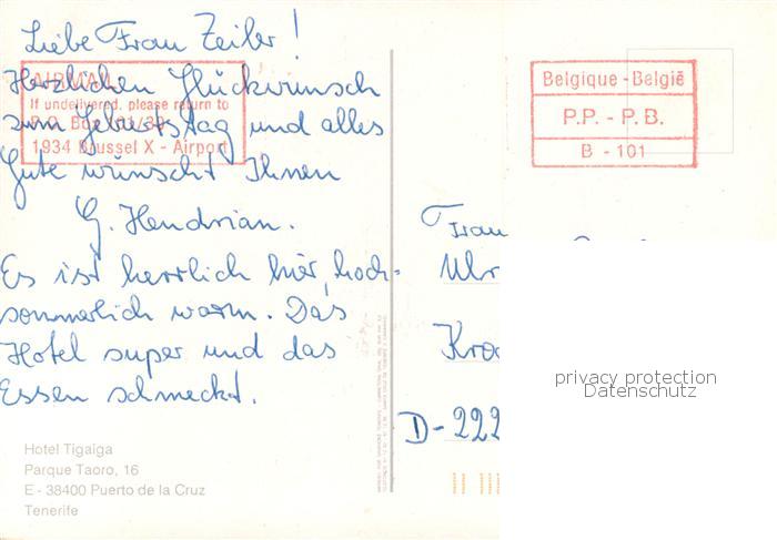 old postcard Puerto-de-la-Cruz Tenerife ES Panorama Hotel Tigaiga Pool Park postalisch gelaufen Erhaltung siehe scans [WerneD78]